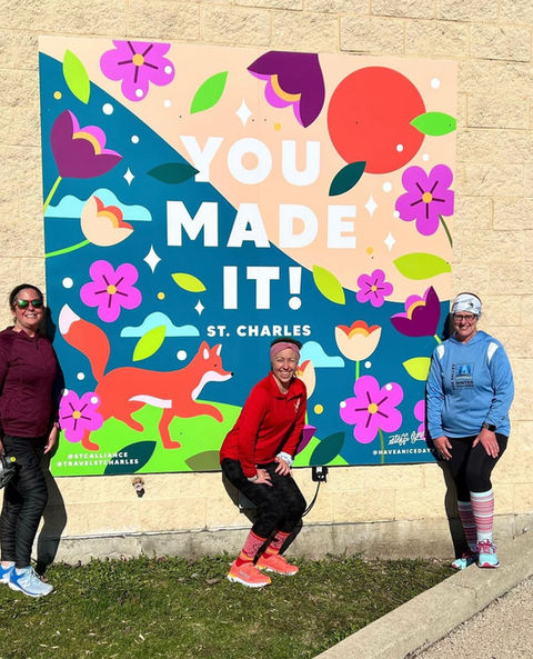 Explore downtown St. Charles and "check in" to each of the 5 murals listed above on the Travel St. Charles App to win a FREE mural inspired water bottle!