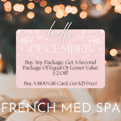 A luxury spa experience from French MedSpa is a wonderful gift for anyone on your list. Through December 23rd, when you purchase a $100 gift card, you'll get a $25 gift card for free! Not only is this a terrific deal on gift cards, but when you purchase any package, you'll receive a second package (of equal or lesser value) half off!