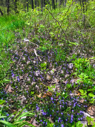 It's hard to think of a better way to spend a lovely spring day than by venturing the trails down by the Fox River. The Norris Woods Nature Preserve connects to the Fox River Trail, and provides plenty of natural beauty to enjoy, especially this time of year. Alongside the pathway, you can't help but notice that the ground is lined with purple Violets in bloom. Scattered around, you'll also discover the little white False Rue Anemones, and those golden Marsh Marigolds.