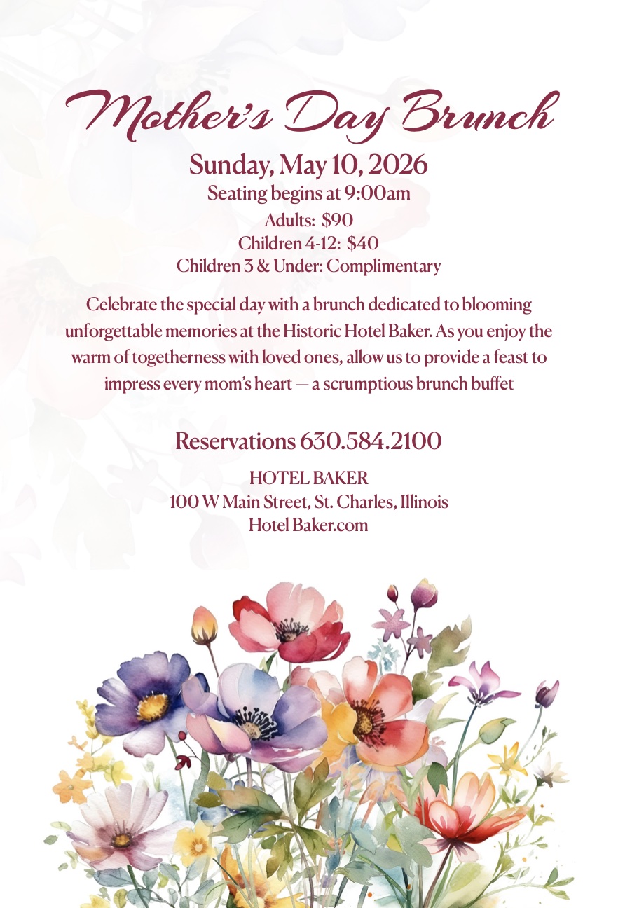 Celebrate Mom's special day with a brunch dedicated to blooming unforgettable memories at the Historic Hotel Baker. Click below for more information and call 630.584.2100 to reserve your spot today.