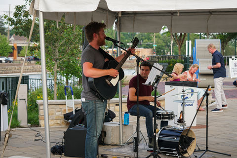 Head out to the plaza with your drink (in a disposable cup) and enjoy live music.